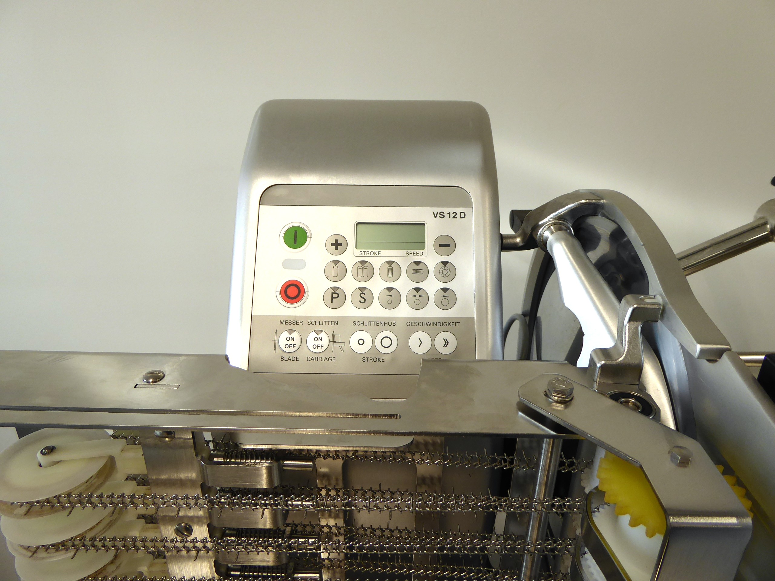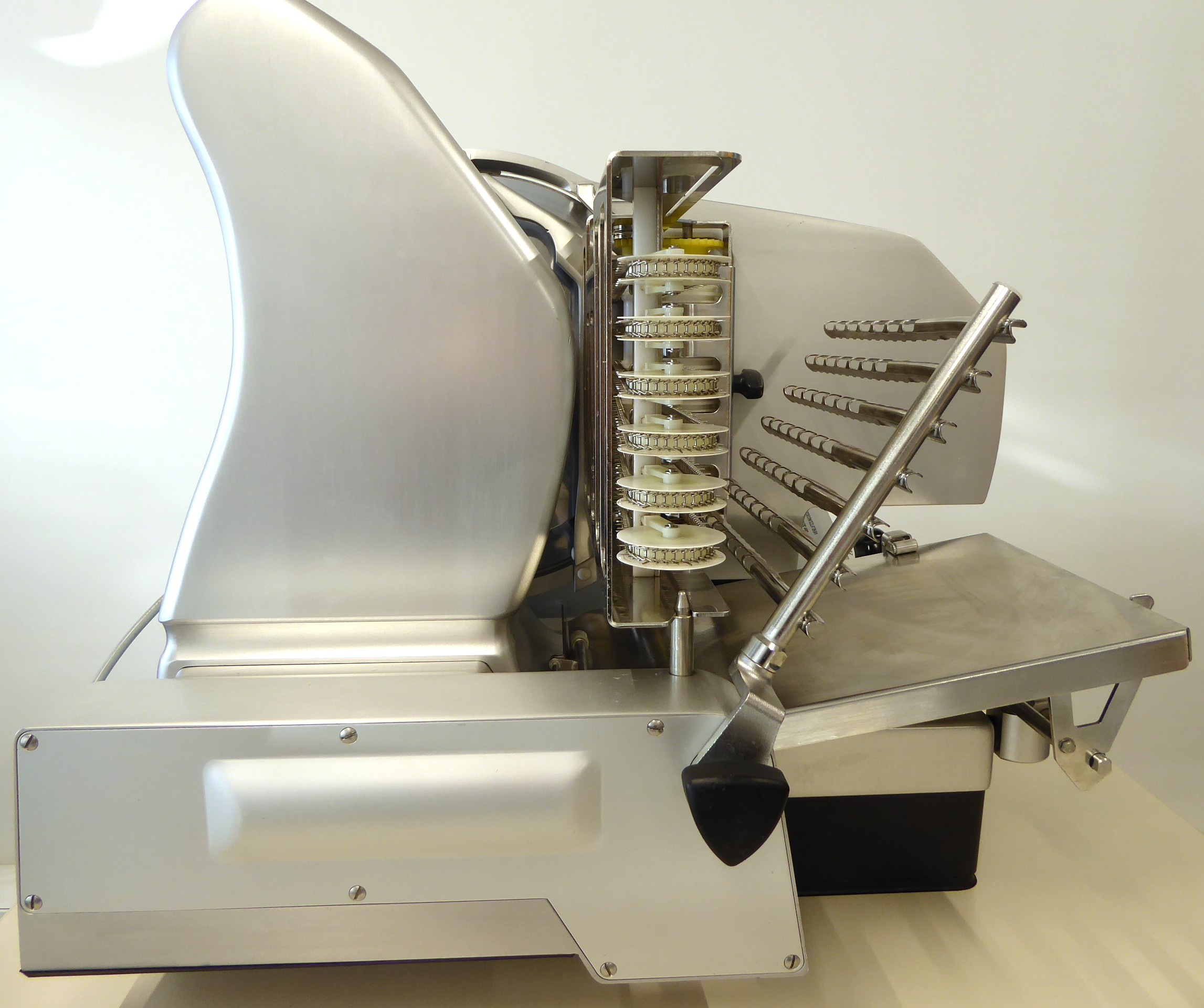 Das Herzstück besteht aus einem kraftvollen Messerantrieb mit intelligenter Motorsteuerung Emotion®. Dank automatischem Ablegesystem ermöglicht sie eine berührungsfreie Ablage und vielfältige Ablagebilder für eine optimale Präsentation. Das komplett aus Edelstahl gefertigte Ablegesystem ist einfach und schnell demontierbar, so dass vollständig und effizient gereinigt werden kann. Die Folientastatur mit intuitiv gestalteter Bediensymbolik sorgt für einfachste Bedienung. Die Ablageform lässt sich nicht nur bequem konfigurieren über Direkttasten, sondern die am meisten verwendeten "PLUs" lassen sich auch dauerhaft abspeichern.